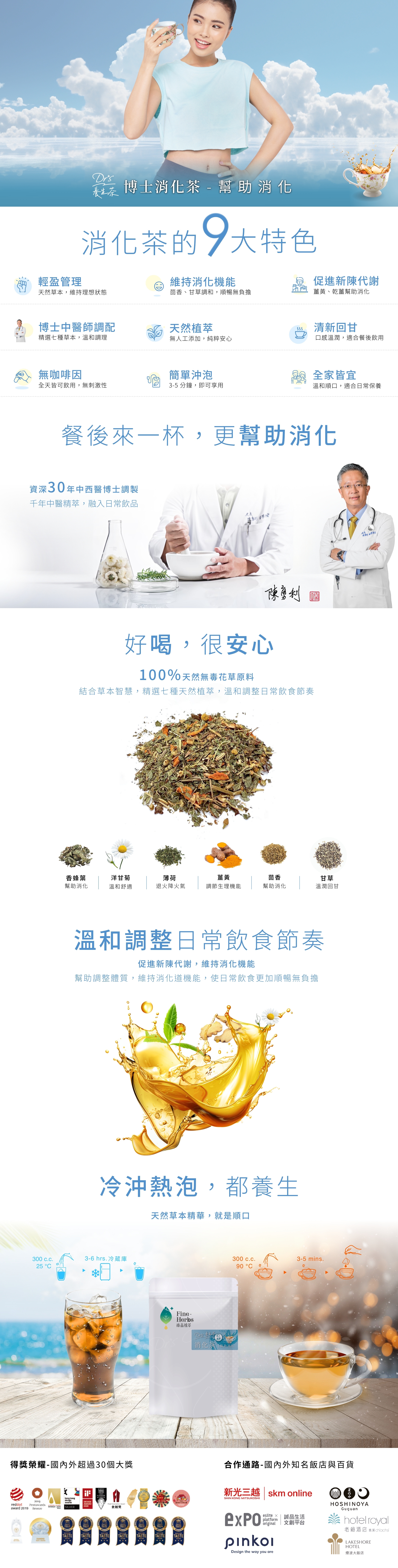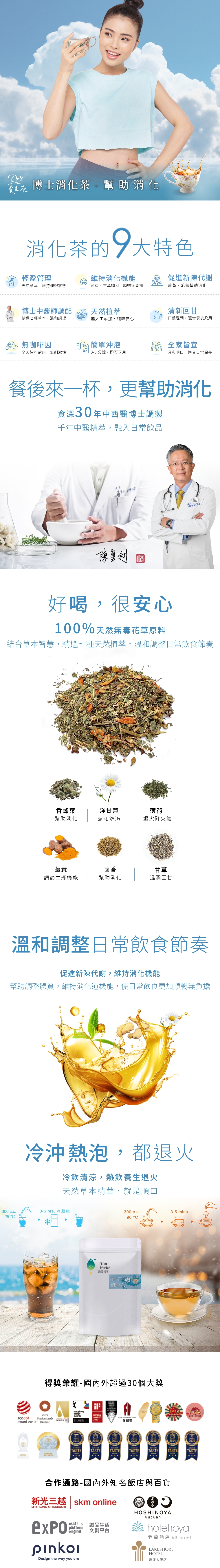 餐後感覺脹脹不舒服時,一杯溫和的草本茶能讓身體重新回到舒適節奏。博士消化茶由博士中醫師 30 年經驗調配,以薑黃為主,搭配乾薑與茴香,主打幫助消化與日常調整。全產品通過 SGS 檢驗,適合餐後、下午或忙碌工作間隙飲用。臻品植萃累積超過30項國際大獎肯定。