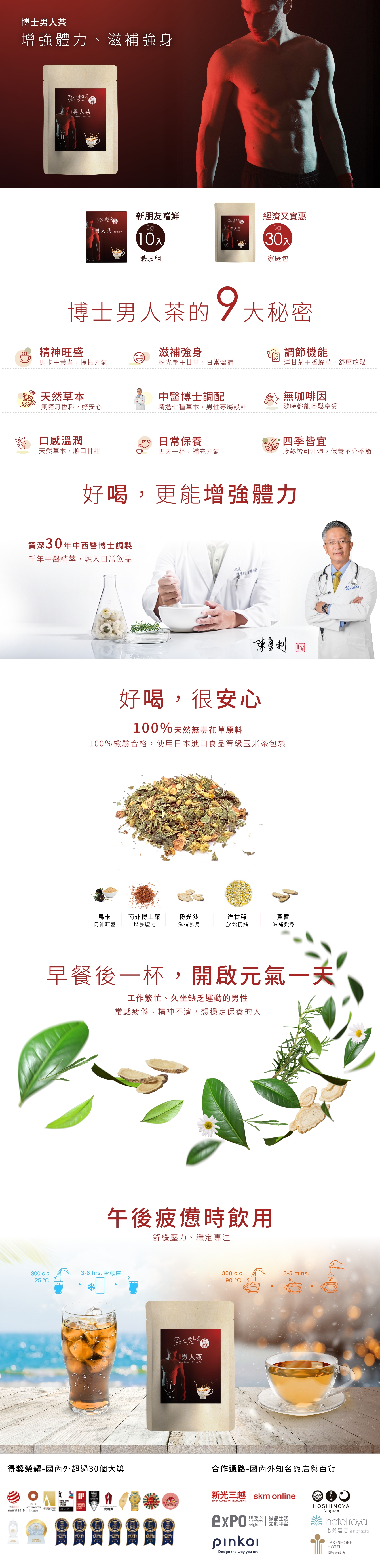 在快節奏的日子裡,外食、加班、久坐或運動量不足,都容易讓精神感到疲乏,身體也悄悄累積壓力。這款茶特別為男性日常設計,嚴選多種草本溫和調和,口感滑順而帶有自然甘甜。每一天,一杯茶,就像給自己一份貼心的能量補給,在忙碌與休息之間,慢慢找回屬於自己的節奏與力氣。